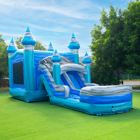 If you're looking for even more fun, attach the pool attachment for a good splashing time. Our rainbow Bounce House With Slide is also available for use with water, making it the perfect addition to any summer party or event.
